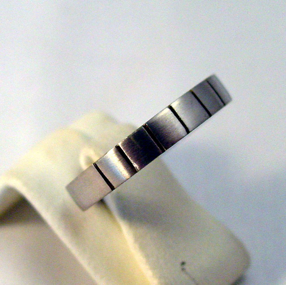 18 karaat witgouden gematteerde vriendschapsring met streepjes.